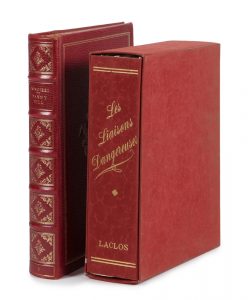CHODERLOS DE LACLOS, Les liaisons dangereuses. Paris, collection Athêna Bibliophile, éditions Athêna, 1949. Illustrations de Paul Emile BECAT. Deux grands in-8 carré sous chemises dans un emboitage unique. Un des 890 ouvrages tirés sur Rives...