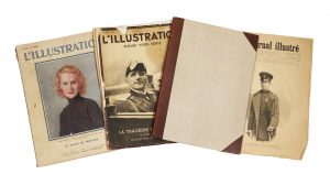 La tragédie du 9 octobre 1934 (l'assassinat du Roi Alexandre de Yougoslavie et de M. louis Barthou) Album hors série L'illustration d'octobre 1934, 1 vol. reliure toile demi-cuir à coins On joint un lot de revues et vieux papiers divers