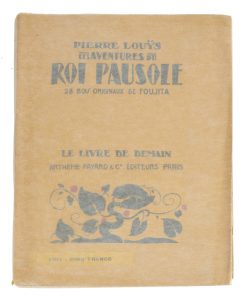 LOUYS (Pierre) Les aventures du roi Pausole, Paris, éditions Librairie Arthème Fayard, Le livre de Demain, achevé d'imprimé en 1938. Illustré de 28 bois originaux de Foujita. Un volume in-8 broché. Bon état, quelques rousseurs. (24 x 19 cm)