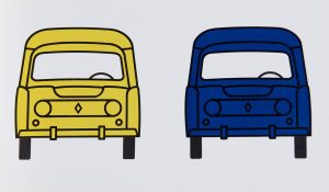 "Rouge vert jaune bleu" Exposition au musée des Arts Décoratifs 1972 en partenariat avec les usines Renault Brochure incomplète illustrée de lithographies en couleurs 3 doubles pages de 4L, une quadruple page, 1 page de portières, une double...
