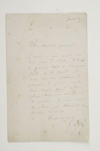 Illustration de la Bible. – Il a terminé le bois d’Adam et Ève et le tient à sa disposition… – Jeudi 19. Il aimerait lui confier la gravure d’un bois pour la Bible, à faire pour le 31 août : « Si vous êtes en mesure de pouvoir le faire, veuillez donc venir faire votre choix demain matin à la maison. Je crois avoir des choses qui siéront bien à votre manière »…