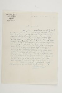 Le « généreux article » le console des critiques « plus ou moins acerbes » avec lesquelles on a accueilli Les Zouaves de Bernard Zimmer : « Je ne suis pas très fort quand il s’agit de choisir une pièce mais je suis encore prêt à miser sur Zimmer et je crois que l’avenir vous donnera raison. La pièce est d’ailleurs fort bien comprise par le public. Elle porte juste. […] les gens qui n’ont rien à se reprocher s’en vont satisfaits. Je craignais que certaines répliques ne soient mal comprises et ne suscitent q.q. manifestations, il n’en est rien. Quand le mauvais effet produit par la Presse sera effacé je crois que cette pièce fera une très bonne carrière »… Il remercie de « tout ce que vous dites sur l’Atelier. Vous êtes avec Antoine un des seuls à sentir tout ce qu’il nous a fallu d’abnégation et de jeunesse pour résister »…