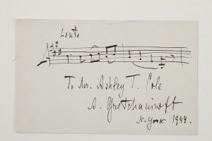 Alexandre GRETCHANINOFF (1864-1956) compositeur russe. P.A.S. musicale, 1944 ; 1 page obl. in-12.