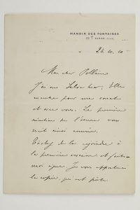 Manoir des Fontaines à Baron 24.X.1910, au violoncelliste Fernand Pollain, qui va créer sa Sonate pour violoncelle et piano. Il a vu Blanche Selva : « Elle marche pour ma sonate et avec vous. La première exécution de l’œuvre vous serait ainsi réservée. Tâchez de la rejoindre à la première occasion et faites moi signe. Je vous apporterai la copie, qui est prête. Je ne ferai pas graver avant l’été prochain »... 16 novembre. « Durand et d’Indy m’avaient déjà envoyé la partition de Fervaal »... On joint une L.A.S. de son épouse (21 avril 1915).