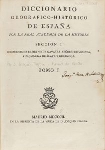 .1802.. LIBRO: .(GEOGRAFÍA).. .DICCIONARIO GEOGRÁFICO-HISTÓRICO DE ESPAÑA POR LA REAL ACADEMIA DE LA HISTORIA. SECCION I. COMPREHENDE EL REYNO DE NAVARRA, SEÑORIO DE VIZCAYA Y PROVINCIAS DE ALAVA Y GUIPUZCOA.. Madrid: Imp. Vda. de Ibarra, 1802....