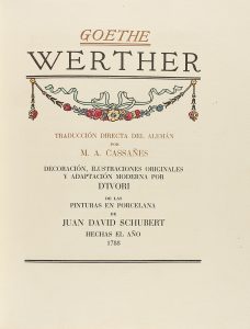 .1945.. LIBRO: .(BIBLIOFILIA).. .GOETHE:. .LAS DESVENTURAS DEL JOVEN WERTHER.. Barcelona: Sociedad Anónima Horta de Impresiones y Ediciones, 1945. 4º menor. 207 p. + 2 h. Ilustraciones por d´Ivori de las pinturas en porcelana de Juan David...