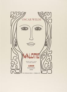 .2000.. LIBRO: .(BIBLIOFILIA).. .WILDE, OSCAR:. .SALOME.. Pamplona: Liber Ediciones, 2000. Folio. 69 p. + 6 aguafuertes a color numerados y firmados por PERELLÓN. Viñetas en el texto. Grueso papel de hilo. En rama, presentado en un estuche de piel...