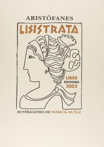 .2002.. LIBRO: .(BIBLIOFILIA).. .ARISTOFANES:. .LISISTRATA.. Pamplona: Liber Ediciones, 2002. Folio menor. 77 p. + 5 aguafuertes a color realizados con técnica mixta y firmados por la PATRICIA MUÑOZ. Viñetas en el texto. Ejemplar en papel de hilo...