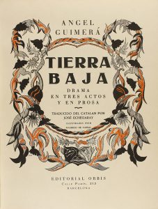 .1930.. LIBRO: .(BIBLIOFILIA-ENCUADERNACIÓN).. .GUIMERÀ, ÀNGEL:. .TIERRA BAJA. Traducción del catalán por José Echegaray.. Barcelona: Ed. Orbis, 1930. 132 p.+ 1 h. Texto orlado. Ilustr. en texto y 12 láminas de litografías a color de MAURICIO...