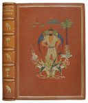 de CARYBE. Preciosa encuadernación en plena piel con mosaico de colores en la piel en el plano anterior y hierros dorados en el posterior, hilos dorados, cejas, nervios, lomera cuajada, corte superior dorado, guardas de seda, conserva las cubiertas originales, presentado en un estuche de cartoné. Edición numerada.
