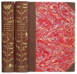 Papel muy limpio. Lleva al final tres ilustraciones a color, una de ellas original dibujado al gouache y acuarela, aunque no está firmada. 2 vol. con soberbia encuadernacion en media piel, puntas, hierros dorados decorativos, en las guardas se han conservado los planos y lomera de tela originales en verde decoradas con dorados, firmada por M. BUENO, cortes dorados.