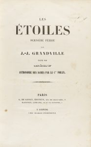 .1850 ca.. LIBRO: .(BIBLIOFILIA-ILUSTR.).. .MÉRY:. .LES ÉTOILES DERNIÈRE FÉERIE PAR J. J. GRANDVILLE.. Paris-Leipzig: Ed. G. de Gonet, s.a. 4º mayor. Frontis coloreado + XVI + 252 p. + 1 h. + 12 lám. a color (uno de ellos retrato del artista....