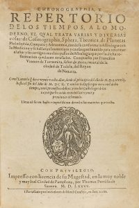 .1585.. LIBRO: .(CIENCIAS-ASTRONOMÍA).. .TORNAMIRA, FRANCISCO VICENTE DE:. .CHRONOGRAPHIA, Y REPERTORIO DE LOS TIEMPOS, A LO MODERNO, EL CUAL TRATA DE VARIAS Y DIVERSAS COSAS: DE COSMOGRAPHIA, SPHERA, THEORICA, DE PLANETAS, PHILOSOPHIA, COMPUTO Y...