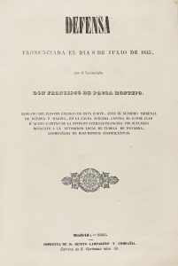 .1845.. FOLLETO: .(DISCURSO).. .PAULA MONTERO, FRANCISCO DE:. .DEFENSA PRONUNCIADA EL DIA 8 DE JULIO DE 1845.. Madrid: Imp. Benito Lamparero, 1845. 4º menor. Enc. en media piel , nervios, conserva las cubiertas originales.