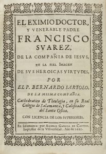 .1693.. LIBRO: .(HAGIOGRAFÍA).. .SARTOLO, BERNARDO:. .EL EXIMIO DOCTOR, Y VENERABLE PADRE FANCISCO SUAREZ, DE LA COMPAÑIA DE IUSUS, EN LA FIEL IMAGEN DE SUS HEROICAS VIRTUDES.. Salamanca: Imp. Andres Garcia de Castro, 1693. 8º mayor. 10 h. + 80 p....