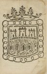 p. El frontis es un gran escudo xilografiado. Antes del escudo leyenda manuscrita en la hoja blanca. Enc. en pergamino, con dorados en el plano anterior y cierres de correa.