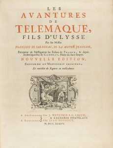 .1734.. LIBRO: .(LITERATURA).. .[FENELON] SALIGNAC DE LA MOTTHE, FRANÇOIS DE:. .LES AVENTURES DE TELEMAQUE, FILS D´ULYSSE.. Amsterdam y Rotterdam: J. Wetstein & G. Smith, y Jean Hofhout, 1734. 4º mayor. 2 h. + Frontis y retrato grabados + X +...