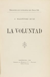 .1902.. LIBRO: .(LITERATURA-GENERACIÓN 98).. .MARTINEZ RUIZ, J. [AZORIN]:. .LA VOLUNTAD.. Biblioteca de novelistas del siglo XX. Barcelona: Imp. de Henrich y Cª, 1902. 8º mayor. 301 p. + 1 h. PRIMERA EDICIÓN. Enc. en plena piel con sello de A....
