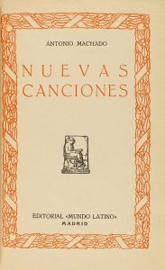 .1924.. LIBRO: .(LITERATURA-GENERACIÓN 98).. .MACHADO, ANTONIO:. .NUEVAS CANCIONES (1917-1920).. Madrid: Edit. Mundo Latino, Imp. de G. Hernandez y Galo Saez, 1924. 8º. 220 p. + 1 h. Salvo tres pequeñísimas restauraciones, ejemplar en buen estado...