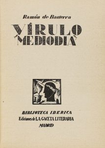 .1926.. LIBRO: .(LITERATURA-VANGUARDIAS).. .BASTERRA, RAMÓN DE:. .VÍRULO MEDIODIA.. Madrid: Ed. de la Gaceta Ibérica, Biblioteca Ibérica, 1926. 8º menor. 76 p. + 2 h. Obra pionera sobre el concepto de hispanidad del siglo XX. PRIMERA EDICIÓN....