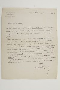 André Antoine (10, 1891-1922, dont une au Directeur de L’Écho de Paris au sujet d’imputations calomnieuses) ; Étienne Cordellier-Delanoue (à l’éditeur Curmer à propos de la parution d’un article) ; Virginie Déjazet (11, 1837-1872, à des artistes ou des directeurs de théâtre, dont celui de Roanne, au sujet de représentations) ; Narcisse Fournier (1878, au sujet d’une pièce sur Rabelais) ; Cécile Sorel (11, 1899-1918, à des journalistes, amis, appels pour récolter des fonds lors d’un gala organisé après l’armistice de 1918 au profit des populations nécessiteuses, ordre pour des enchères, etc., et 8 photographies dont une signée) ; lettre du secrétaire du baron Taylor au Directeur du Courrier de l’Europe ; pièce de vers adressée à Rachel ; etc.
