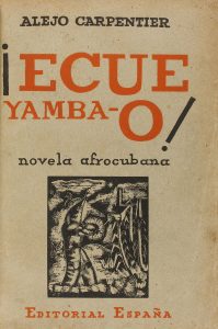 .1933.. LIBRO: .(LITERATURA-VANGUARDIAS).. .CARPENTIER, ALEJO:. .¡ÉCUE- YAMBA - Ó! Historia Afro-cubana.. Madrid: Editorial España, 1933. 8º mayor. 240 p. + 9 fotografías. PRIMERA EDICIÓN. Bonita enc. en plena piel en mosaico con papel,...