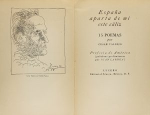 .1940.. LIBRO: .(LITERATURA-POSGUERRA).. .VALLEJO, CESAR:. .ESPAÑA APARTA DE MI ESTE CÁLIZ. 15 POEMAS POR.... Lucero: México, 1940. 4º. Retrato realizado por Picasso. César Vallejo, el más célebre poeta peruano del siglo XX escribió este...