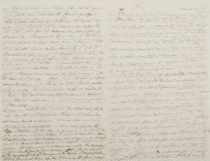 Pauline Viardot. 6 L.A., Saint-Pétersbourg et Moscou [janvier-avril 1853], à son mari Louis Viardot ; 29 pages in-8 sur papier fin à son chiffre couronné (une lettre incomplète de la fin avec petites corrosions d’encre).