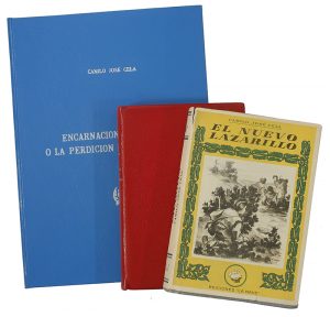 cubiertas originales. [Más:] .NUEVAS ANDANZAS Y DESVENTURAS DEL LAZARILLO DE TORMES.. Madrid: Ed. La Nave, 1944. 8º menor. 316 p. + 1 retrato del autor. Enc. original en tela editorial y sobrecubierta. [Más:] .ENCARNACIÓN TOLEDANO O LA PERDICIÓN DE LOS HOMBRES.. Oviedo: Ed. Altair, 1984. 4º menor. 4 h. Ilustr. por Lorenzo Goñi, en el texto. En rústica original, presentada en una carpeta en plena piel. Las tres obras son PRIMERAS EDICIONES.