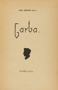 .1913.. LIBRO: .(LITERATURA-GENERACIÓN 27).. .MORENO VILLA, JOSÉ:. .GARBA.. Madrid: Imp. de José Zabala, 1913. 8º. 125 p. PRIMERA EDICIÓN. Obra de juventud del poeta y pintor José Moreno Villa. Enc. en plena piel. Exlibris de anterior poseedor....
