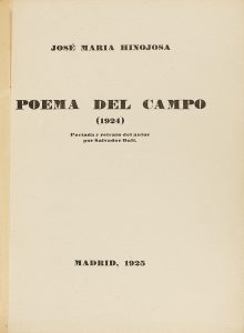 .1925.. LIBRO: .(LITERATURA-GENERACIÓN 27).. .HINOJOSA, JOSÉ MARIA:. .POEMA DEL CAMPO.. Madrid: Imp. Maroto, 1925. 8º. 63 p. + 2 h. Portada y retrato de Salvador Dalí. En rústica original con el cajo restaurado, presentado en una bonita caja en...