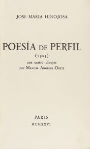 .1926.. LIBRO: .(LITERATURA-GENERACIÓN DEL 27).. .HINOJOSA, JOSE MARIA:. .POESÍA DE PERFIL con cuatro dibujos por Manuel Angeles Ortiz.. Paris: Imp. Le Moil y Pascaly, 1926. 4º menor. 92 h. + 2 h. 4 lám. En rústica original con faltas...