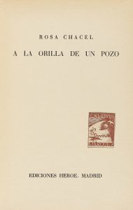 .1936.. LIBRO: .(LITERATURA-GENERACIÓN 27).. .CHACEL, ROSA:. .A LA ORILLA DE UN POZO.. Madrid: Ed. Héroe, 1936. 8º mayor. 18 h. Conjunto de 30 poemas sin paginar. PRIMERA EDICIÓN. Enc. cartoné original ligeramente rozada con un cerco ténue en...