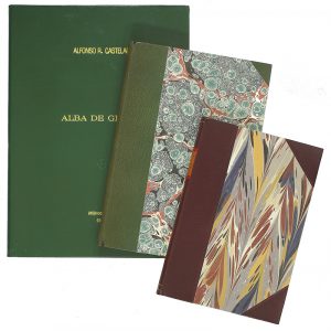 carpeta en plena piel. [Más]. ROMERO MURUBE, JOAQUIN: TIERRA Y CANCION.. Ilustr. de Escassi. Madrid: Editoria Nacional, 1948. 4º mayor. 134 p. + 3 h. Enc. en media piel y puntas. [Más:] .HERNÁNDEZ, MIGUEL: DENTRO de luz y otras prosas.. Portada e ilustr. de J. R. Escassi. Madrid: Ediciones Arion, 1958. 8º mayor. 59 p. + 2 h. Bonita enc. en media piel y puntas, tejuelo en mosaico; conservan las cubiertas originales. PRIMERAS EDICIONES.