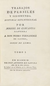.1781.. LIBRO: .(CERVANTINA).. .CERVANTES SAAVEDRA, MIGUEL DE:. .TRABAJOS DE PERSILES Y SIGISMUNDA, historia setentrional por... a Don Pedro Fernandez de Castro, Conde de Lemos. TOMO I y II.. Madrid: Imp. Don Antonio de Sancha, 1781. 2 vol. en 8º...