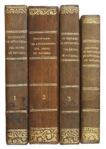 .1840.. LIBRO: .(NAVARRA).. .YANGUAS Y MIRANDA, JOSÉ:. .DICCIONARIO DE ANTIGÜEDADES DEL REINO DE NAVARRA.. Pamplona: Imp. Javier Goyeneche, 1840. 4 vol. en 8º mayor. I: VIII + 588 p. + 1 h. II: 784 p. + 1 h. III: 542 p. + 11 h. [Más:] .ADICIONES...