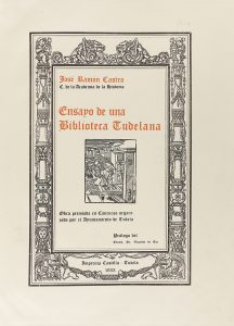 .1933.. LIBRO: .(NAVARRA-BIBLIOFILIA).. .CASTRO, JOSÉ RAMÓN:. .ENSAYO DE UNA BIBLIOTECA TUDELANA.. Tudela: Imp. Castilla, 1933. 4º. 292 p. Texto a dos columnas. Portada en orla. Enc. en plena piel, nervios, tejuelo.
