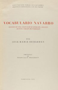 .1952.. LIBRO: .(NAVARRA-LENGUA).. .IRIBARREN, JOSE MARIA:. .VOCABULARIO NAVARRO. SEGUIDO DE UNA COLECCION DE REFRANES, ADAGIOS, DICHOS Y FRASES PROVERBIALES.. Prólogo de Fracisco Yndurain. Pamplona: Ed. Gomez, 1952. 4º menor. 667 p. + 1 mapa...