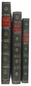1957. 4º menor. 250 p. e ilustr. fuera del texto. Conserva las cubiertas originales. [Más:] .ID. HOMBRES Y TIERRAS. LIBRO PÓSTUMO. .Id. Ediciones y libros s.a., 1997. 8º mayor. 322 p. + 2 h. Con ilustr. en el texto. Conserva las cubiertas originales. Las tres obras enc. cada una en plena piel con hilos dorados en ambos planos, tejuelo y nervios.