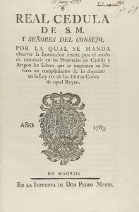 .1783.. FOLLETO: .(NAVARRA-CÉDULA).. .REAL CEDULA DE S. M. Y SEÑORES DEL CONSEJO, POR LA QUAL SE MANDA OBSERVAR LA INSTRUCCION INSERTA PARA EL MODO DE INTRODUCIR EN LAS PROVINCIAS DE CASTILLA Y ARAGON LOS LIBROS QUE SE IMPRIMAN EN NAVARRA EN...