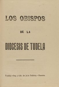 .1870 ca.. FOLLETO: .(NAVARRA-RELIGIÓN).. .LOS OBISPOS DE LA DIOCESIS DE TUDELA.. Tudela: Imp. Julio Subiran, 1870 ca. 8º. 49 p. Enc. en media piel.