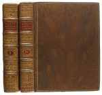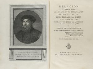 DESCUBRIMIENTO IMPRESOS Y MSS. Y NOTICIA DE LOS HABITANTES, SUELO, CLIMA Y PRODUCCIONES DEL ESTRECHO. [Sigue:] APENDICE A LA RELACION DEL VIAJE AL MAGALLANES DE LA FRAGATA DE GUERRA SANTA MARIA DE LA CABEZA, QUE CONTIENE EL DE LOS PAQUEBOTES SANTA CASILDA Y SANTA EULALIA PARA COMPLETAR EL RECONOCIMIENTO DEL ESTRECHO EN LOS AÑOS DE 1788 y 1789.. Madrid: Ed. Viuda de Ibarra, hijos y compañía, 1788, 1793. 2 tomos en 1 vol. en 4º menor. I: 3 h. + XVI + 359 p. II: 2 h. + 128 p. Ilustr. con 5 mapas plegados y 5 tablas también en hojas plegadas. Frontis con el retrato de Magallanes firmado por Ferdin Selma. Enc. en pasta española, nervios, tejuelo. Primera edición. Palau 352514 y 35515: ´ El derrotero, páginas 92 a 158 , se debe a Dionisio Alcalá Galiano y Alejandro Belmonte; y los mapas al piloto Joaquín Camacho´, ´Las dos unidades aparecen juntas casi siempre´.