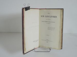 ESSAI SUR LIVRES DANS L'ANTIQUITE PARTICULIEREMENT CHEZ LES ROMAINS par H.GERAUD, PARIS TECHENER 1840. in 8°, xiv, 232 p, non rogné. Demi chag, titre et date en queue. RARE.