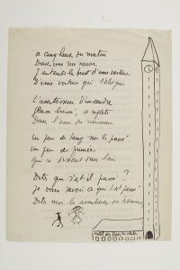 Robert DESNOS (1900-1945). Poème autographe avec dessin à l’encre de Chine, [À cinq heures] ; 1 page in-4.