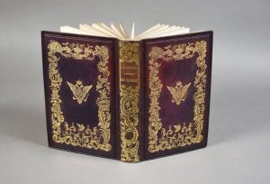 Voyage dans la Russie méridionale et la Crimée par la Hongrie, la Valachie et la Moldavie. Paris, Ernest Bourdin et Ce, 1841. In-4 chagrin prune, dos orné d'un décor de rinceaux floraux et animaliers dorés ornant le dos et les plats, armes de l'Empire russe dorées au centre des plats, tranches dorées (Boutigny).
