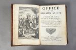 On joint: Livre d'église latin- françois contenant none, vespres et complies. Partie d'hiver. Paris, libraires associés, 1761.- Missel de Paris, latin- françois, avec prime, tierce, sexte, et les processions. Eté, II. Partie. Idem, 1764; ens. 2 vol. in-12 mar. rouge, pièces de titre sur les dos ornés et dor., fil. dor. encadr. les plats, tr. dor. (Reliures de l'époque).