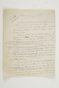 Réponse à un article de Paul Morand dans Comœdia (Et vite !, 10 novembre 1927), à propos d’Aux fontaines du désir (1927) ; la réponse de Montherlant sera publiée dans Comœdia le 15 novembre 1927. Montherlant conteste l’exaltation de Morand pour « la vitesse en soi. Le concept de vitesse a la même vulgarité que le concept de nombre, et fait avec lui une figure d’une grande bassesse en face du concept de qualité. Quant à la griserie de la vitesse, c’est une sensation fort grossière. Quelqu’un de raffiné ne l’éprouve pas sans sentir qu’il s’encanaille » ; la vitesse est « à la portée de tous les mufles »…{CR} On joint un premier brouillon, Réponse à Morand (2 pages, la première entièrement biffée).
