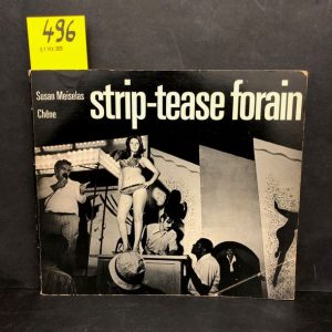 MEISELAS (S.). Strip-tease forain. P., Chêne, 1976, 8° oblong, non paginé, br. (dos abîmé). Edit. orig. française. Susan Meiselas, née le 21 juin 1948 à Baltimore dans le Maryland, est une photojournaliste américaine, membre de l'Agence Magnum depuis 1976. "Strip-tease forain" est un reportage sur les strip-teaseuses dans les foires de la Nouvelle Angleterre.
