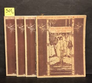 "Tableaux de la nature". Album de photographies prises d'après nature. P., Perche, 1908, 12 fasc. 4°, agrafé, couverture Art nouveau illustrée par Jessie Marion King. Série complète en 12 livraisons. Rarissime revue en bon état sur la vie des êtres prises d'après nature.