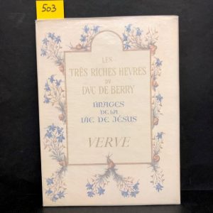 Vol. III, n° 10. Les Très riches heures du Duc de Berry. Images de la vie de Jésus par Pol de Limbourg et Jean Colombe (Musée Condé à Chantilly). Textes par Henri Malo. P., Revue "Verve", 1943, 4°, 15 planches hors texte en couleurs, cartonnage souple édit.